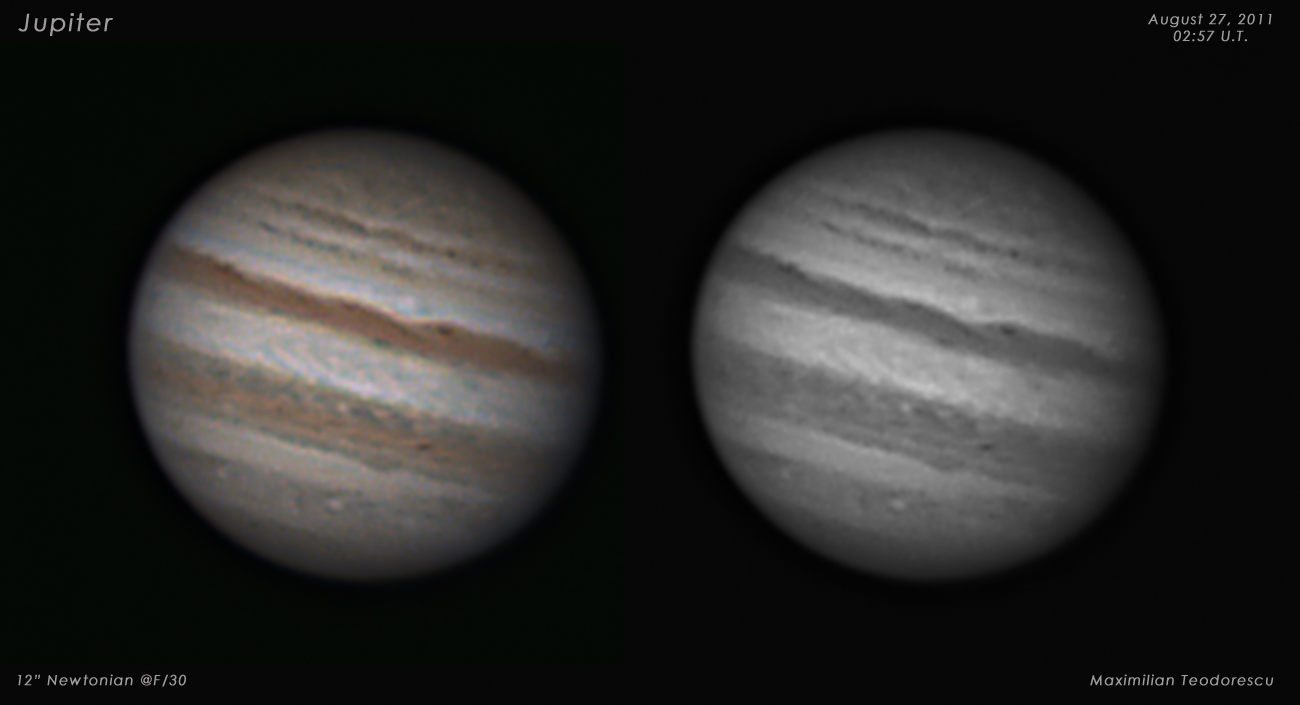 Cum anul asta, cel putin pentru latitudinea noastra, planeta Jupiter e probabil cel mai interesant subiect fotografic al Sistemului nostru Solar, nu incerc sa ratez noptile (mai bine zis diminetile) in care planeta ajunge sus spre meridian.