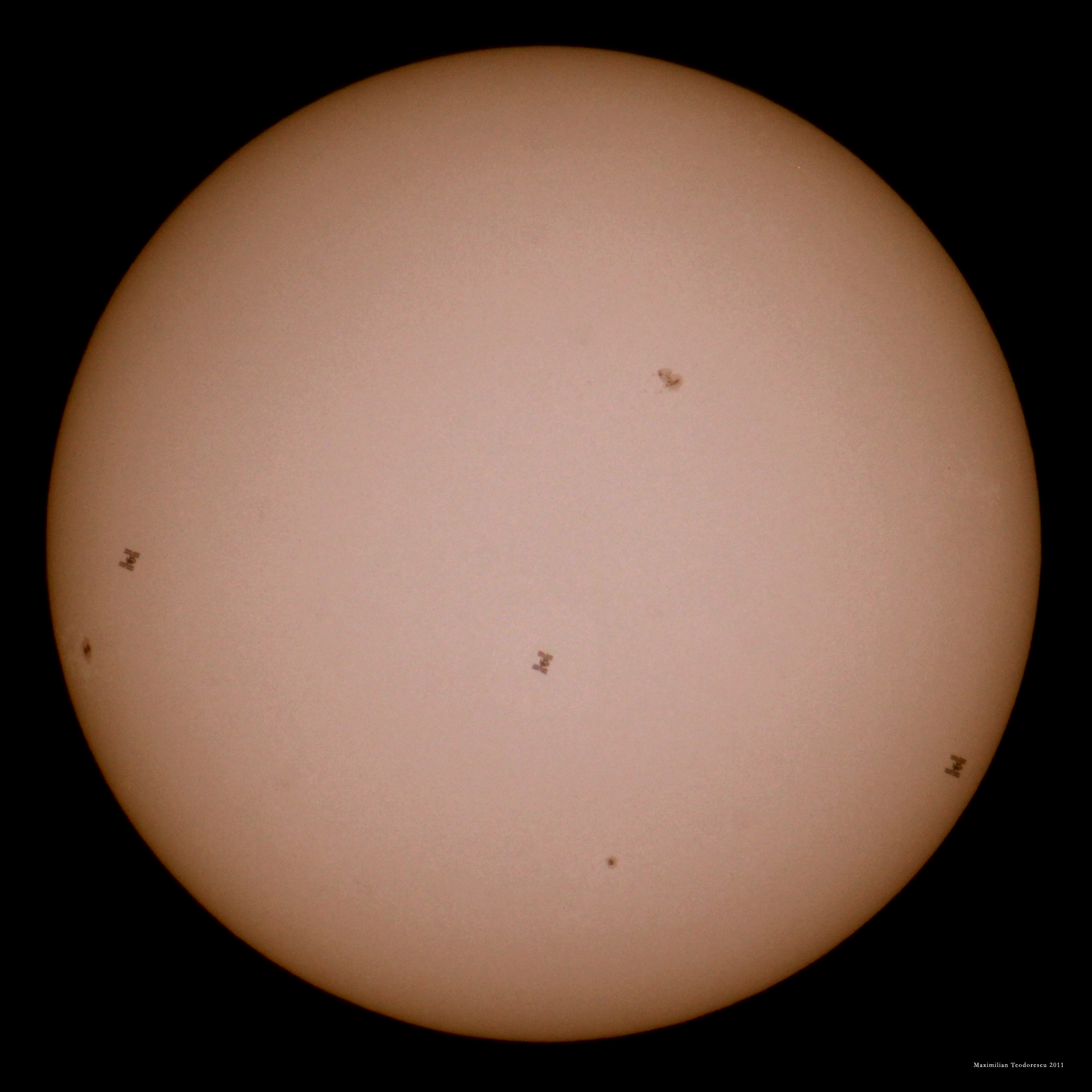 Insa cum eu am avut ghinionul ca norii sa treaca asa de tarziu “de pe” discul Soarelui, turbulenta aferenta mi-a cam stricat rezolutia cu care ma obisnuisem de la tranzitele anterioare, astfel ca imaginile sunt cele mai slabe de pana acum obtinute de mine la o trecere a ISS peste Soare.