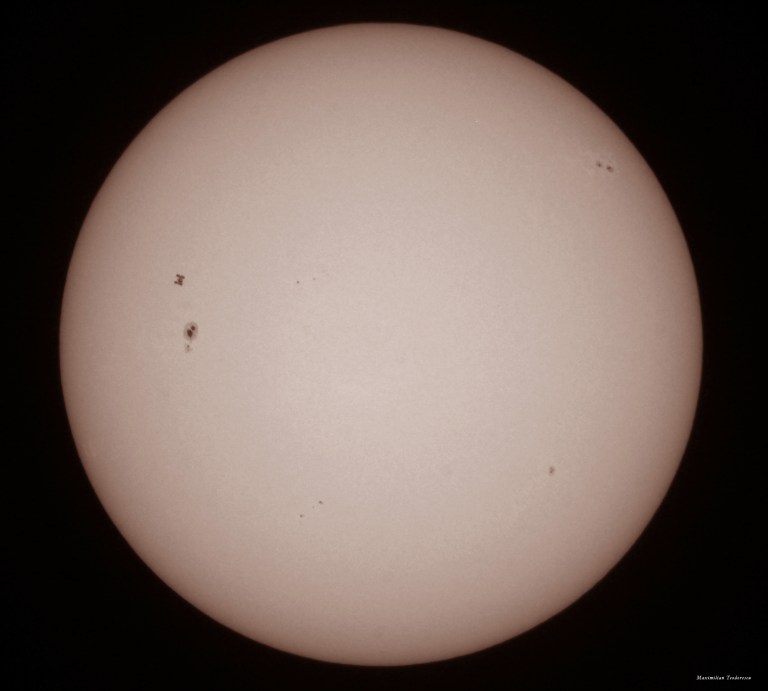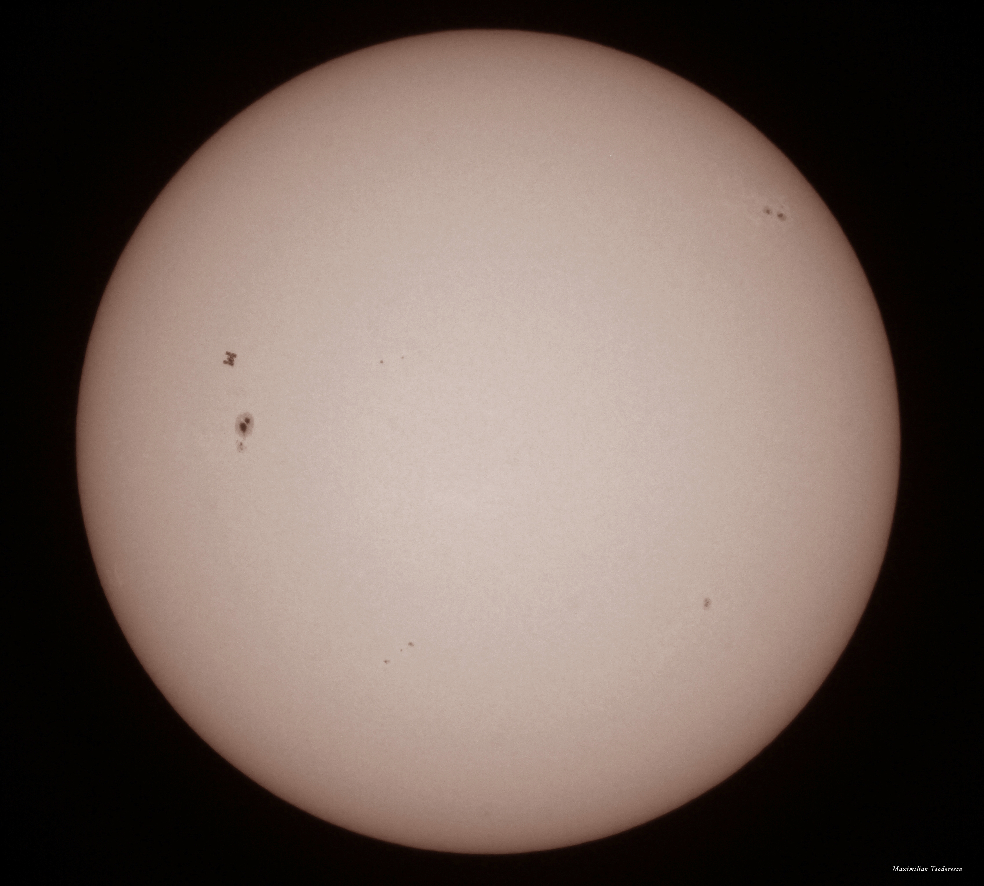 Si inca unul. La ora 10:52:05 T.L. a avut loc un tranzit al ISS peste discul Soarelui. Unul destul de lung ca durata (0.74 secunde).