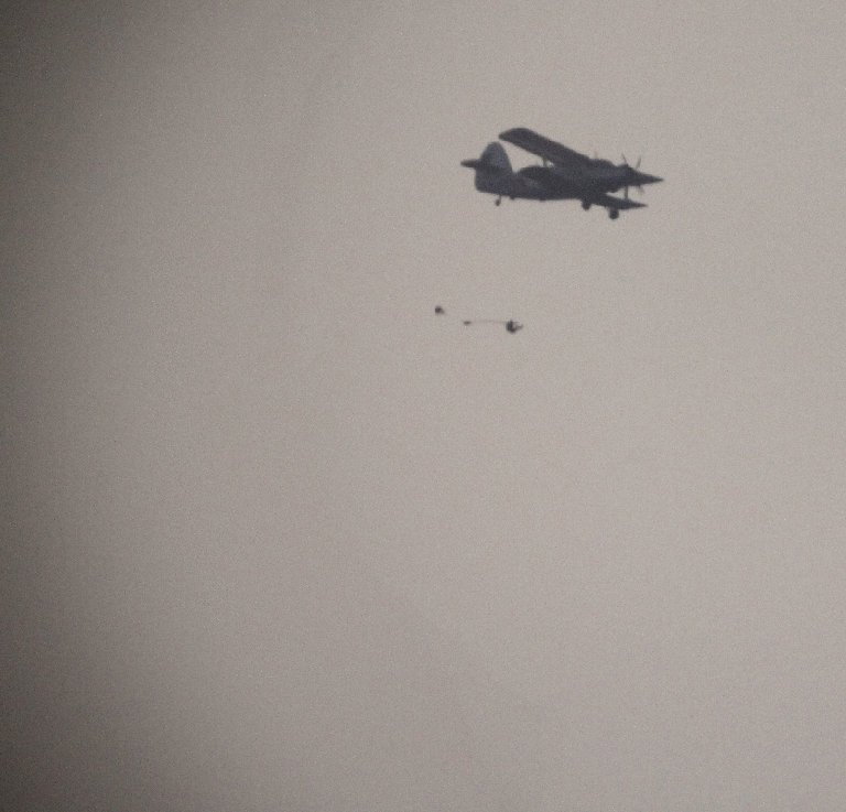 Pentru ca Soarele tocmai apusese, lumina nu a fost chiar cea mai fericita, iar pentru ca telescopul are  o focala de 1.2 metrii, am fost din nou nevoit sa folosesc valori ale ISO destul de mari, de la 800 la 3200. Insa detaliile de la distanta la care eram, m-au surprins: in unele cadre se observa chiar si suspantele parasutelor.