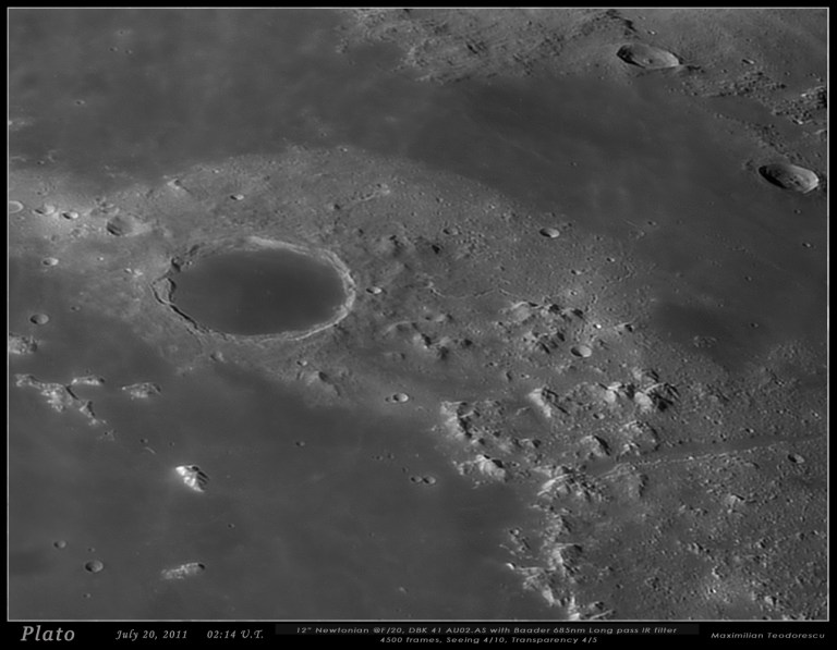 Excelente imagini! Personal, ma fascineaza a 2-a imagine (Plato) – foarte bine conturat in 3d relieful lunar, cu micile masive muntoase, dar si cele 2 cratere din coltul nord-estic. Probabil pozitia craterului – catre marginea nordica a discului lunar da unghiul favorabil si nota de realism.