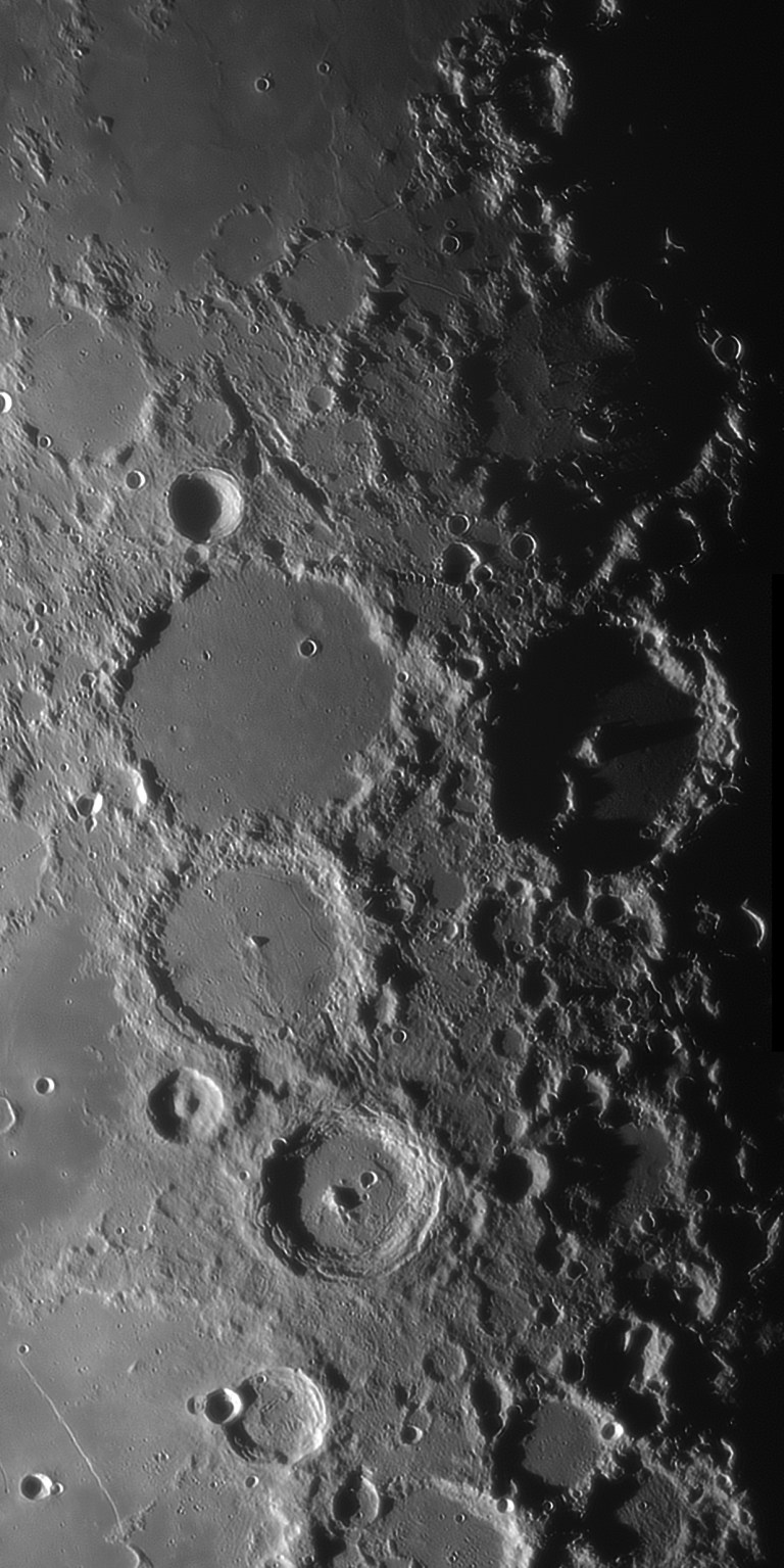 Ca detaliu relevant pentru nivelul de rezolutie, desi seeingul a fost sub medie, se observa rima perpendiculara pe Rupes Recta in stanga jos.