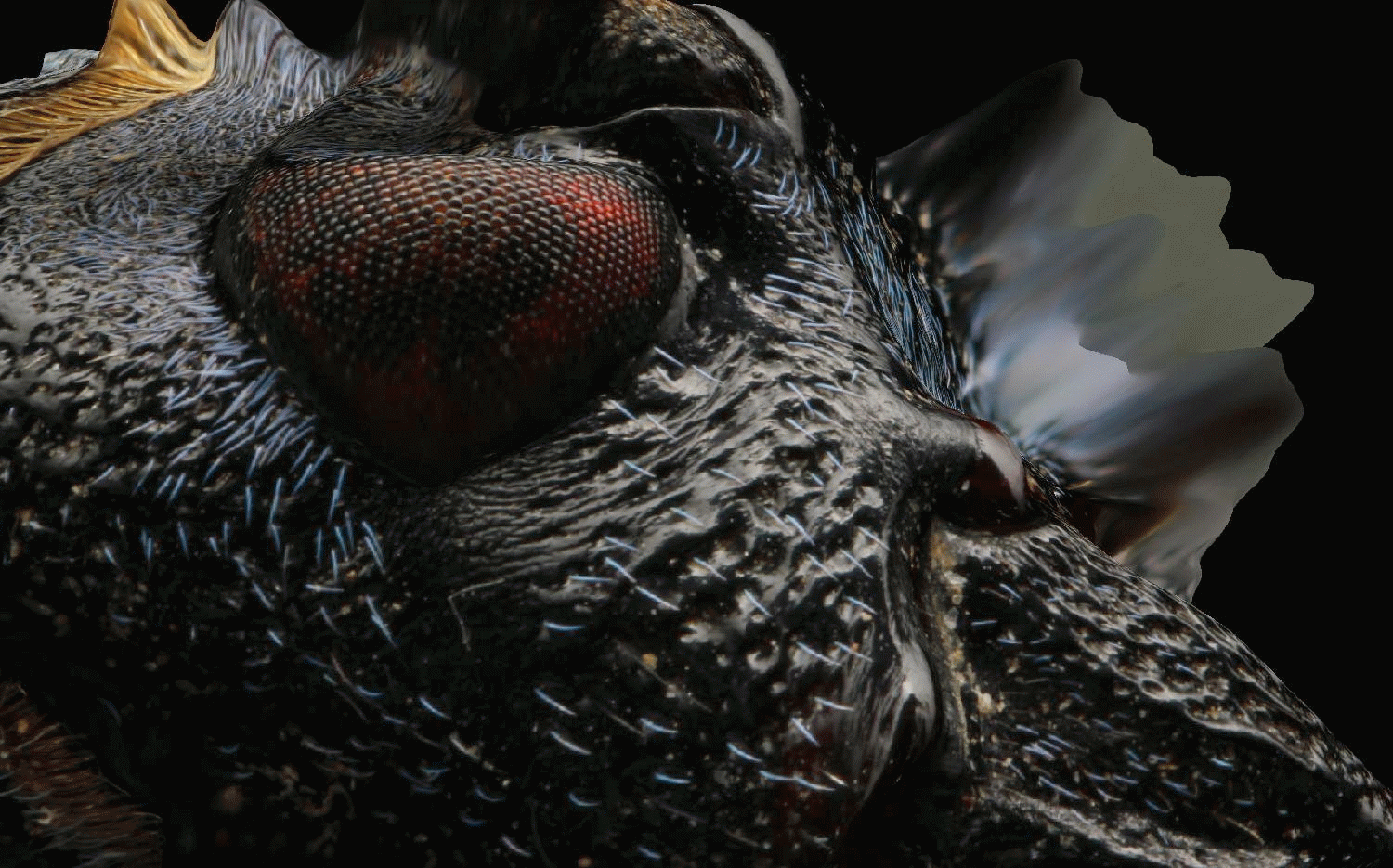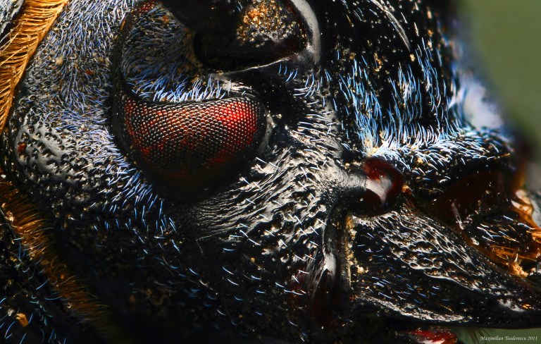 Inca o imagine, de data asta din lateral, cu accent pe zona unuia dintre ochii compusi: