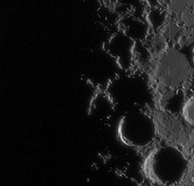 In imagine se observa si faimosul X lunar, format de peretii craterelor Purbach, Blanchinus si La Caille. Un crop cu regiunea respectiva si X-ul in centru:
