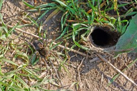 Si cativa metrii mai incolo, incep sa zaresc printre firele de iarba, cam din doi in doi metrii, cate o gaura de…paienjeni. Lycosizi mai exact.