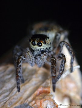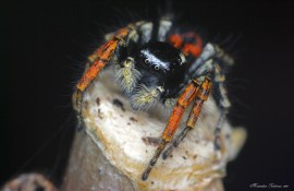 Si masculul speciei de mai sus (Philaeus chrysops). Cred ca e cel mai frumos paianjen saritor de la noi din tara.