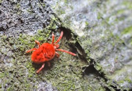Un mic acarian (Euthrombidium rostratus) mi-a atras atentia. Cel mai comun acarian de prin paduri.