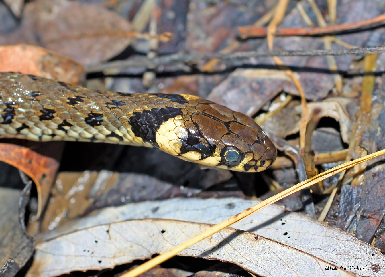 Tot pe la marginea padurii, printre cateva bucati de zapada, un Natrix natrix. Din pacate inghetul l-a prins pe neasteptate…exemplarul era mort, insa pastrat intr-o pozitie destul de naturala.