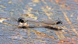 Primavara este un bun anotimp pentru imperechere la insecte, asa cum o arata cei doi tantari chinoromizi (nu am identificat specia) de mai jos. Masculul este cel cu irizatii pe aripi si cu antenele “pufoase”: