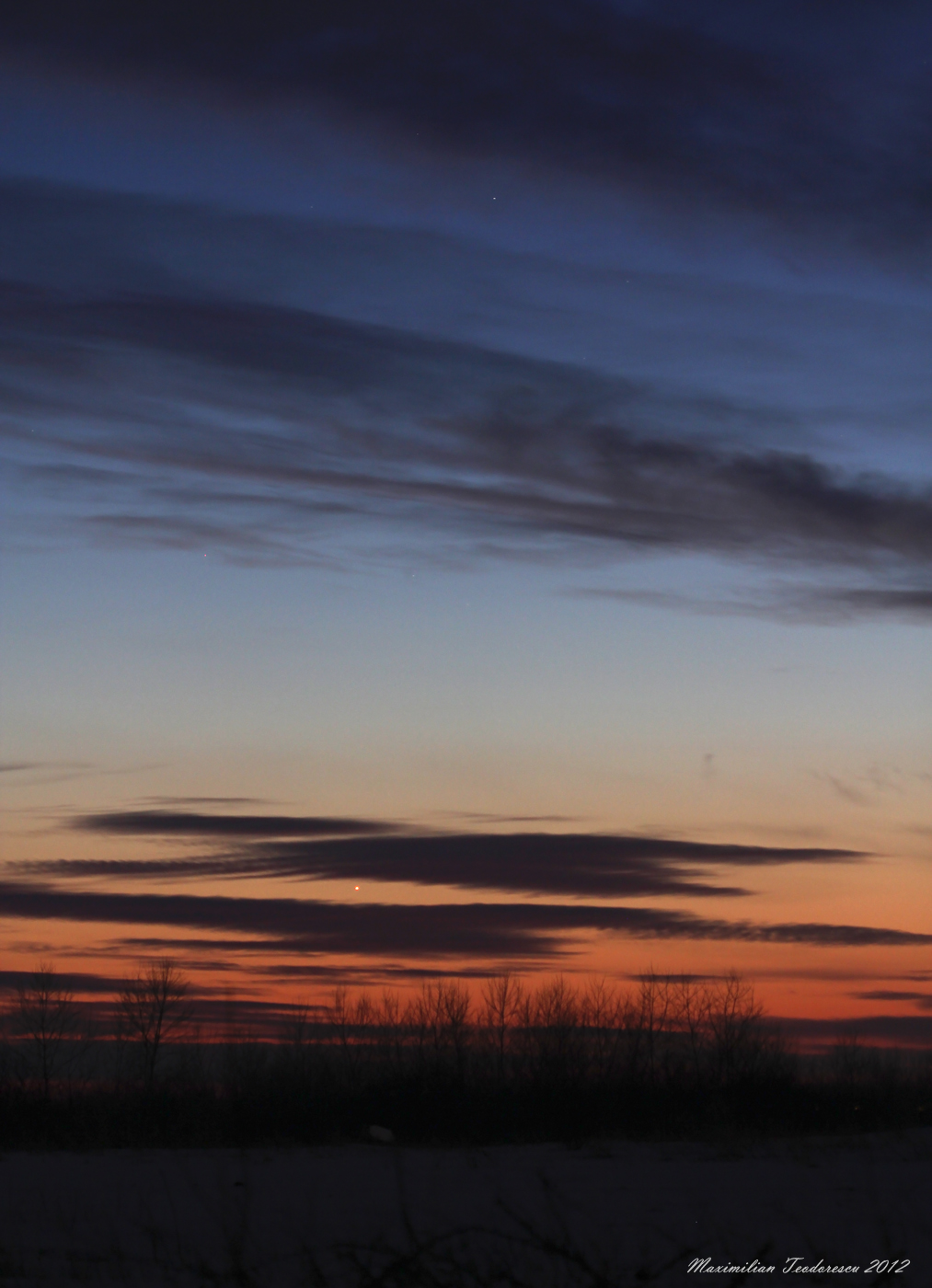 Impreuna cu sotia (ca si aseara) am iesit in apropierea localitatii Dumitrana (Ilfov) pe un drum nedezapezit, dar de pe care am avut “acces” la un orizont liber.