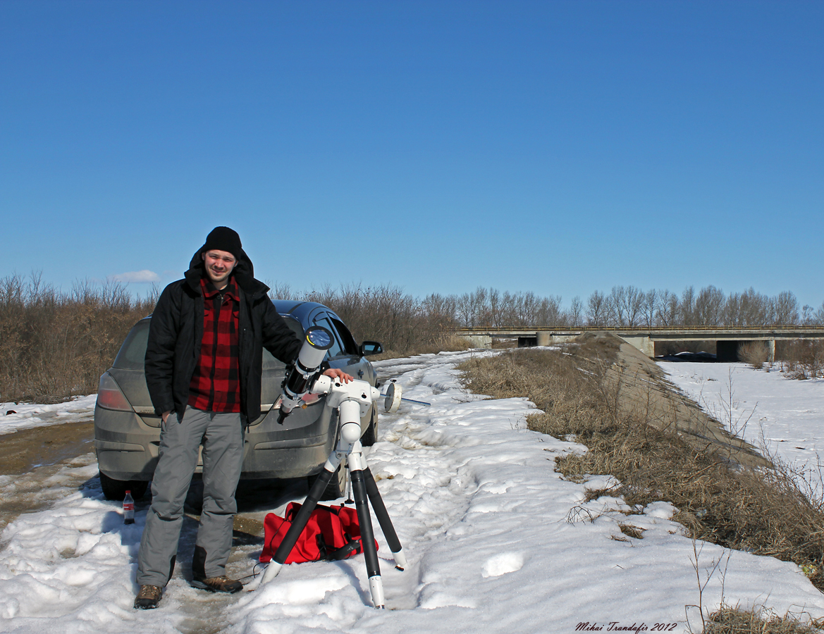 Flattenerul e cel de 0.85x de la SkyWatcher. Se mentine o oarecare vignetare, insa cu mult mai mica. Pentru uz pe timp de zi e suficient insa, l-am incercat de cateva ori la Luna cu Soarele sus pe cer. Pe timp de noapte, si tinand cont de pretentiile astrofotografiei, nu e perfect corectata insa imaginea. Dar categoric e cu mult mai bine decat fara, plus ca ai bonusul unei focale mai scurte, F/D mai mic, si evident erori de ghidaj mai greu perceptibile. Una peste alta e un “upgrade” eficient, insa nu stiu daca pretul de peste 8 milioane se merita cu adevarat; problema e ca daca vrei ceva mai mult nu ai ce altceva sa achizitionezi la banii astia…