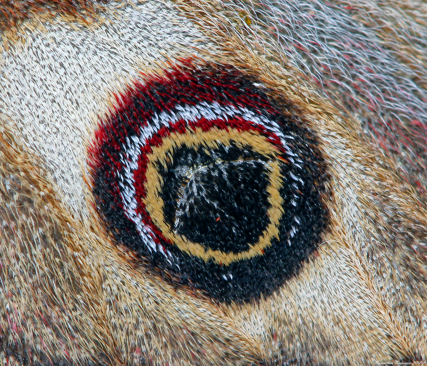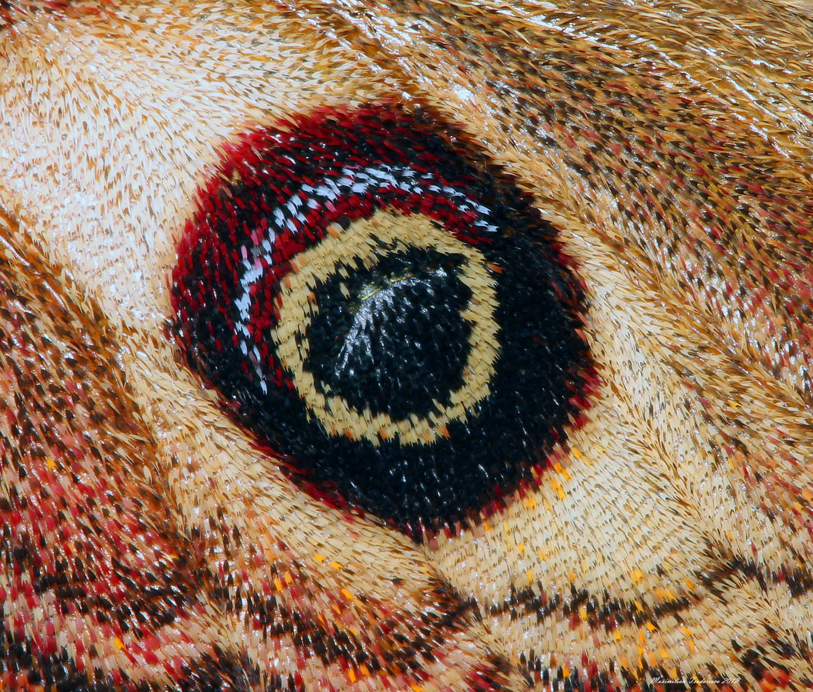 Si un detaliu al ochiului de pe aripa anterioara dreapta in care se observa solzii individuali: