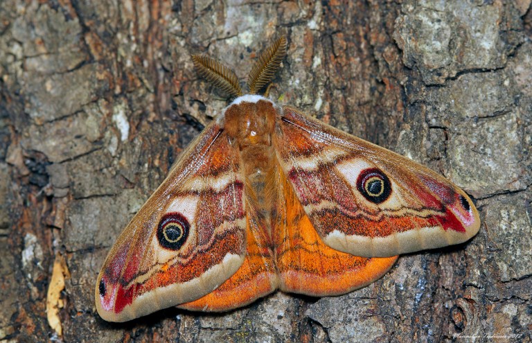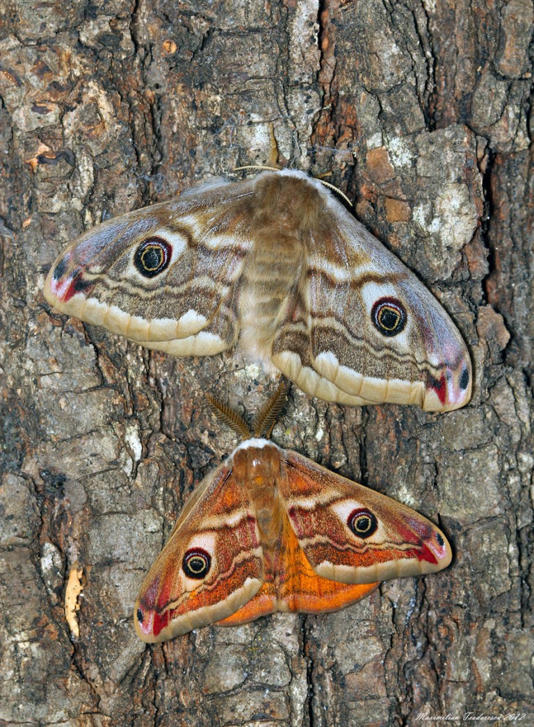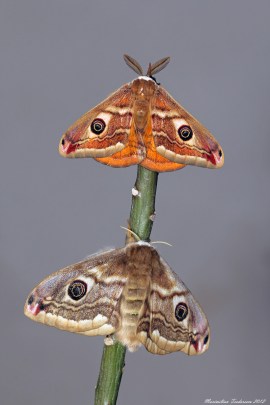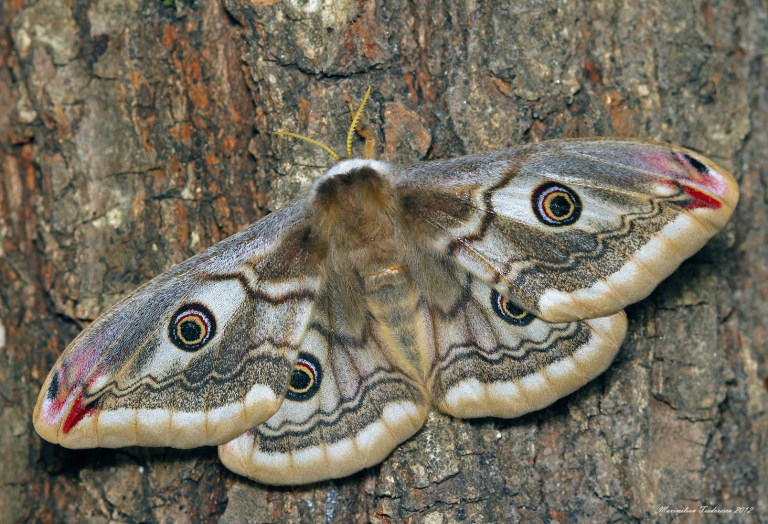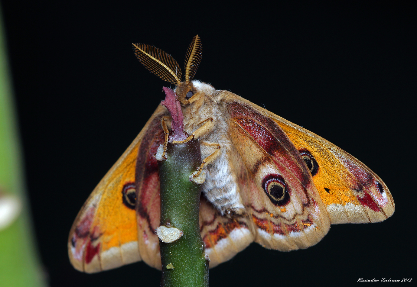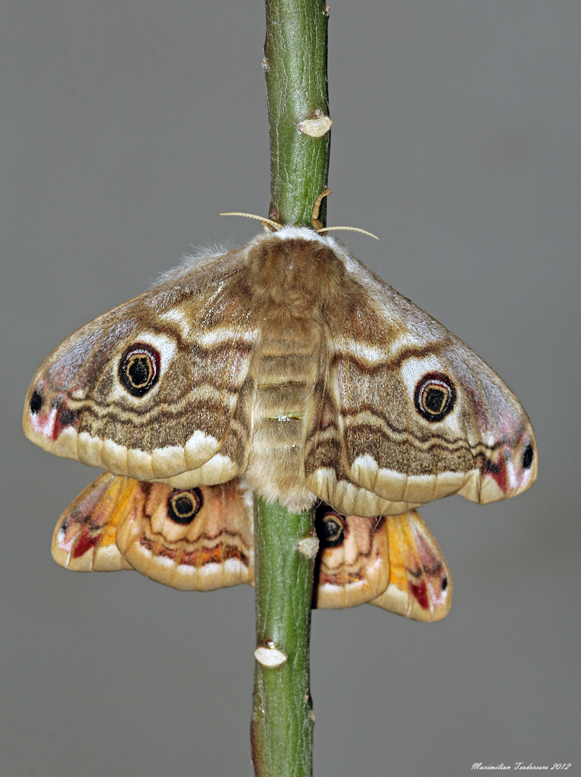 In primele fotografii apare femela, asemanatoare cu mult mai marele Saturnia pyri.