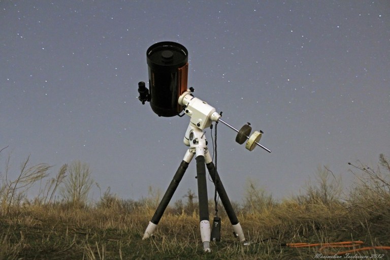 O imagine a instrumentului pe montura, sub lumina Lunii ce umplea cerul: