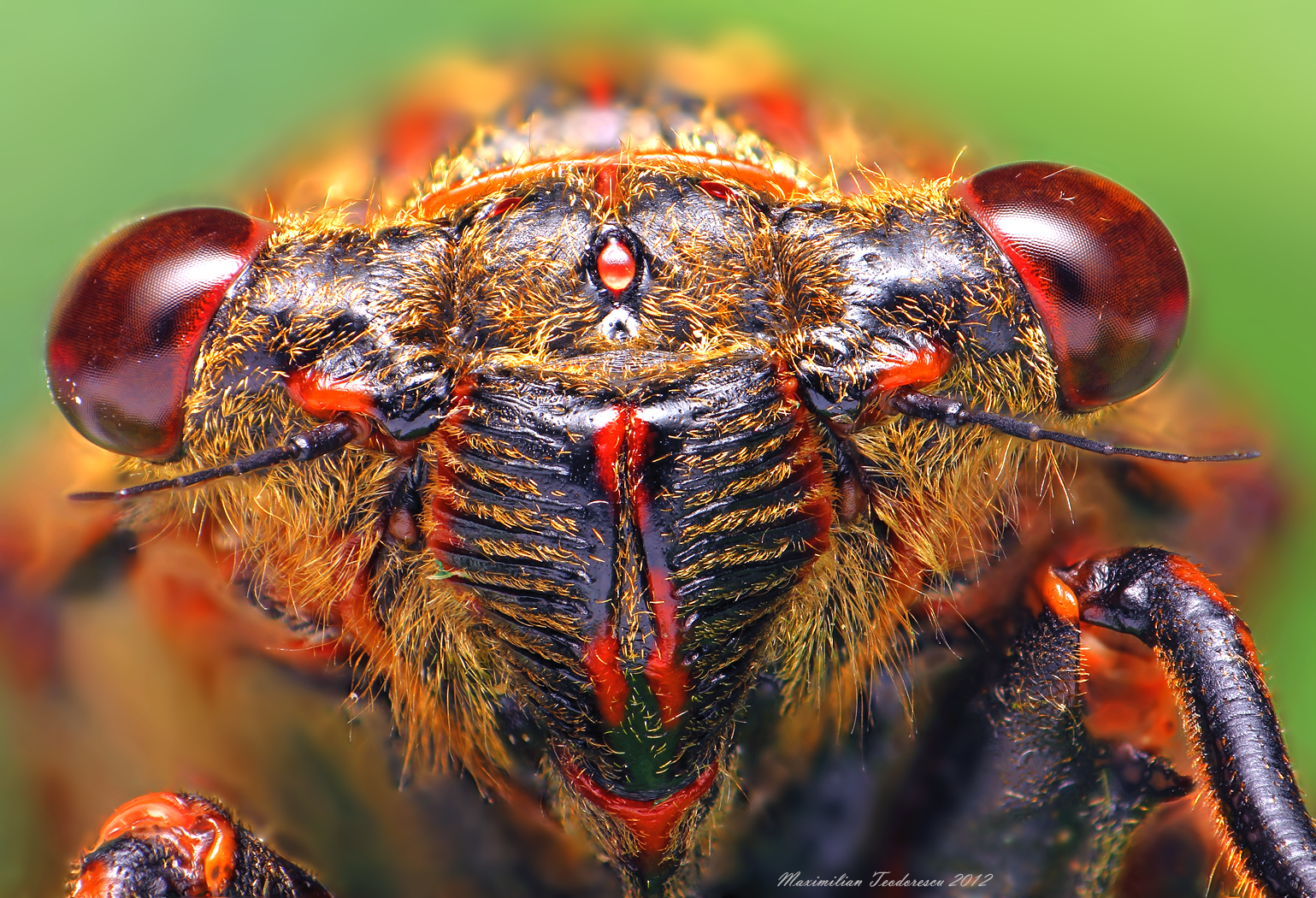 Fotografiile de mai jos prezinta frontal doar capetele, dimensiunile maxime laterale la nivelul ochilor principali variind de la 3 la 9 mm.