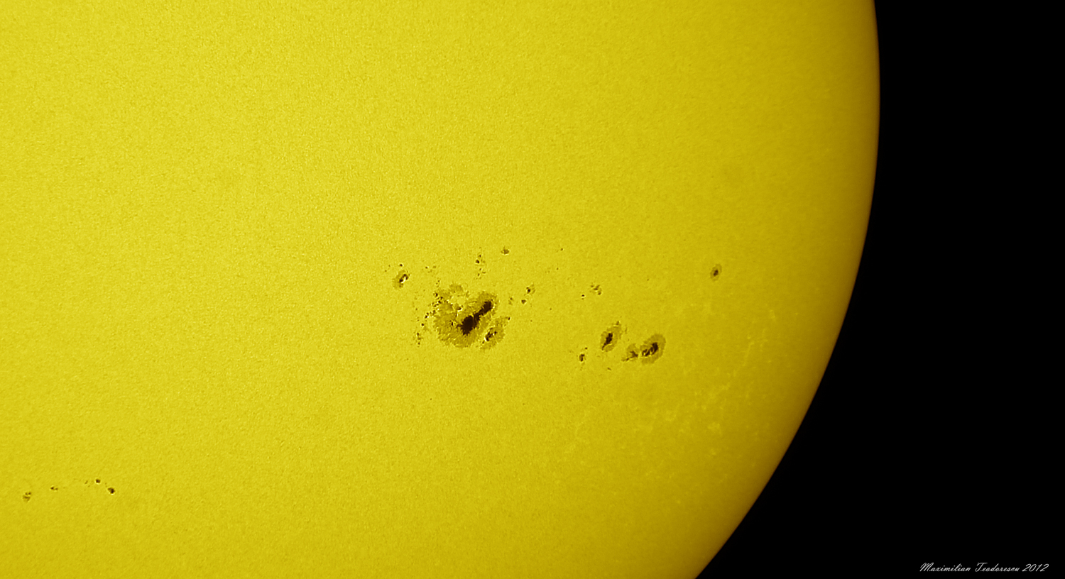 Sotia: Maksutov SkyWatcher 90mm, Canon 1000D, ISO 100, 1/4000s, filtru Astrosolar ND 3.8. Totul pe o montura EQ 5.