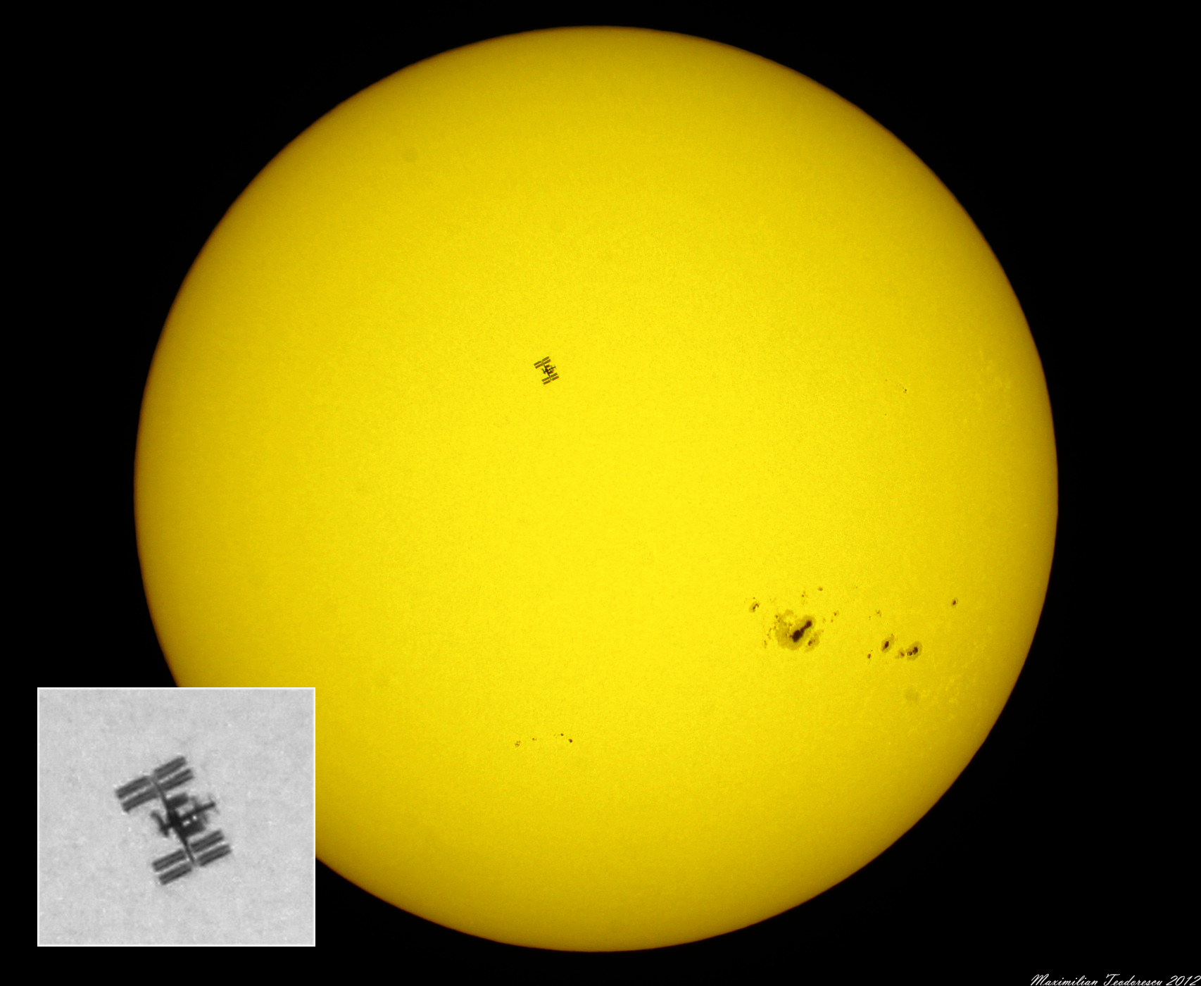 Si una dintre imaginile sotiei, prima ei fotografie a Statiei Spatiale Internationale, culmea, si in tranzit peste Soare :):