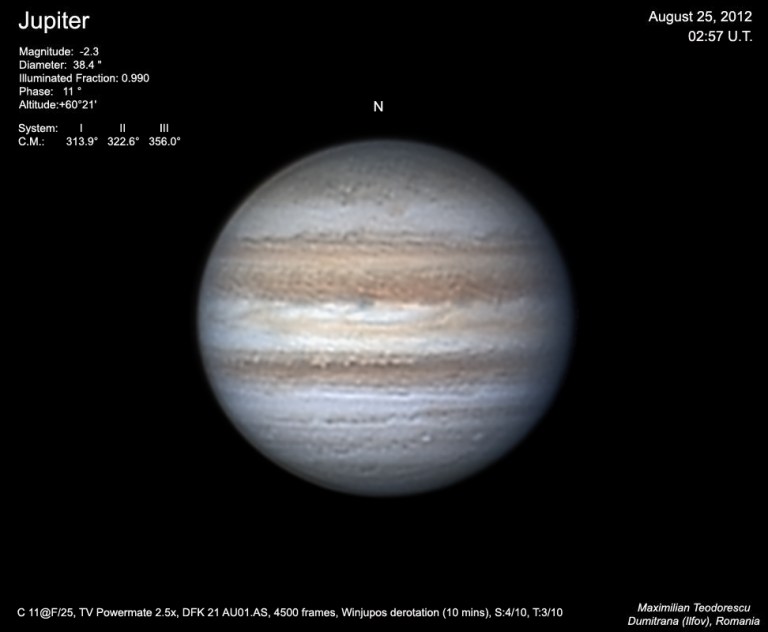 Prima imagine din acest post am trimis-o si la ALPO Japan- Jupiter Section, unde si apare postata AICI, cu orientarea “normalizata” avand Sudul in sus.