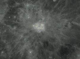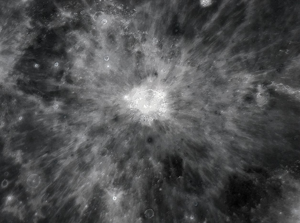 a doua-imagine procesata puternic pentru reliefarea razelor si a craterelor cu halou (margine exterioara) intunecat,