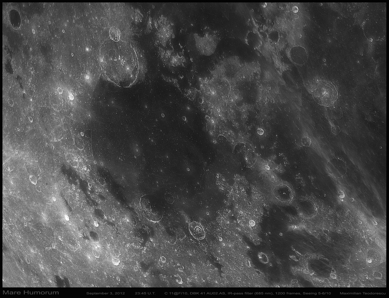 De aceasta data este vorba de Mare Humorum (“Marea Umezelii” sau “Marea plina cu umezeala” ar fi o traducere corecta dar comica oarecum; humor=umor=comic).