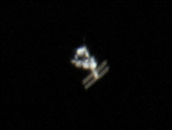 Ei bine da, e vorba de rezervorul extern de combustibil, surprins in momentele post-separare, avand si o evidenta miscare de rotatie. Foarte probabil ca aceasta imagine este una dintre singurele realizate de un amator ce prezinta aceasta componenta esentiala a sistemului Navetei Spatiale, tinand cont ca lansarea navetei se realizeaza oarecum de pe partea “cealalta” a Pamantului fata de Romania. Cel putin sunt sigur ca sunt printre foarte putinii care au reusit vreodata observarea acestei componente, rezervata vizual in mod normal doar celor prezenti in vecinatatea (maxim sute de km) bazei de lansare. Pacat ca trecerea a fost una joasa fata de orizont, turbulenta atmosferica afectand foarte mult imaginile.