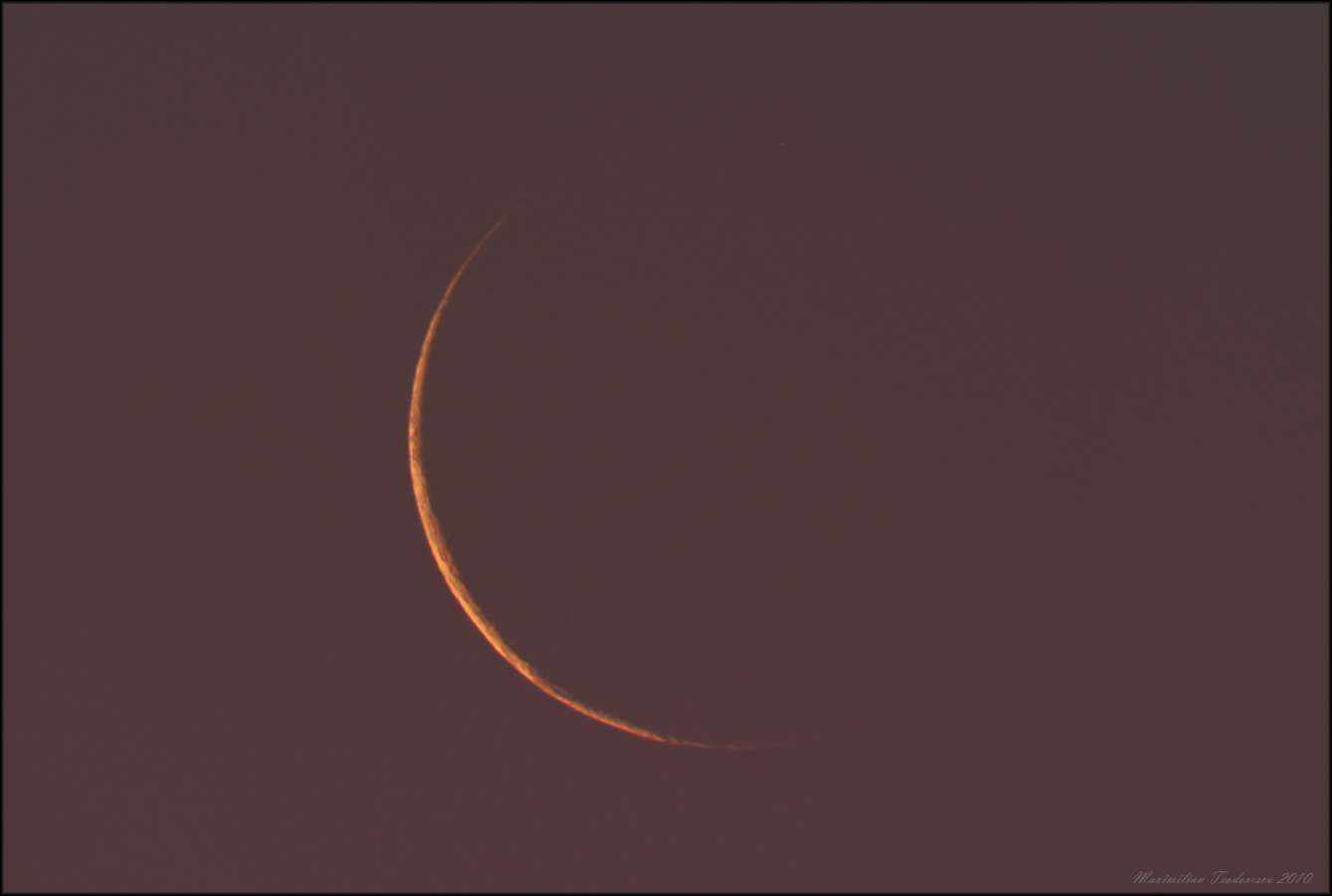Imaginea de mai sus prezinta una dintre cele mai fine secere lunare observate de mine pana in prezent.