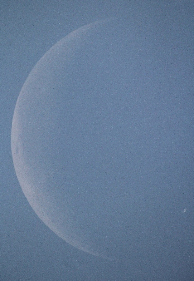 Ora tranzitului a fost 11:41:23 T.L., ceea ce a facut ca Luna sa fie la o altitudine de 50 grade deasupra orizontului, iar Soarele la 60 de grade. Destul de nefavorabil evenimentul, tinand cont si de faza slab iluminata a Lunii, dar si de pacla din aer, cat si de norii in formare. Din acest ultim motiv nu am reusit nici sa focalizez corect, rezultand o imagine relativ slaba. Evident si turbulenta a avut rolul ei, distrugator.