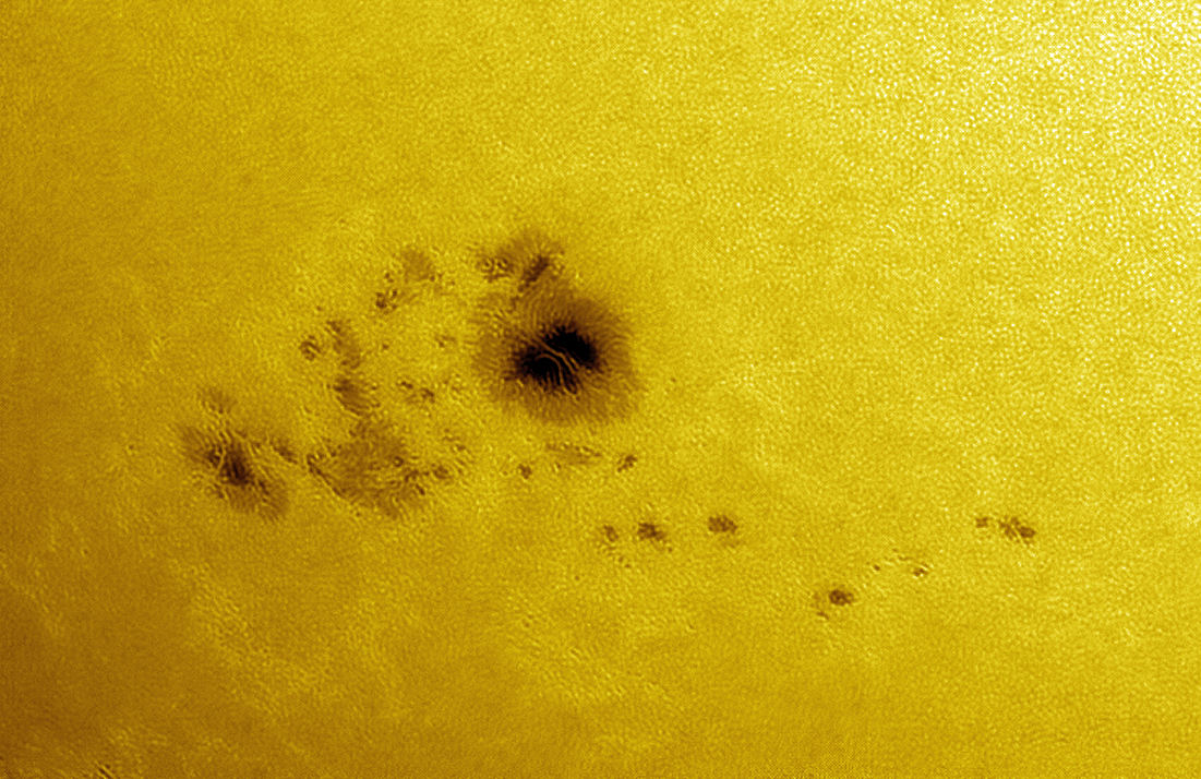 Imaginile sunt achizitionate in jurul orelor 08:48-09:13 U.T., in focarul instrumentului, cu filtru Astrosolar ND 3.8 frontal si Baader Solar Continuum la camera.