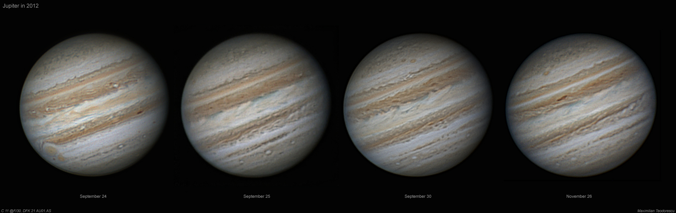 Cum din timp in timp imi mai testez cunostiintele in prelucrarea imaginilor astronomice planetare (numai asa…ca sa nu uit), am dat peste un colaj al celor mai bune imagini planetare personale din 2012 realizate cu C 11-ele.