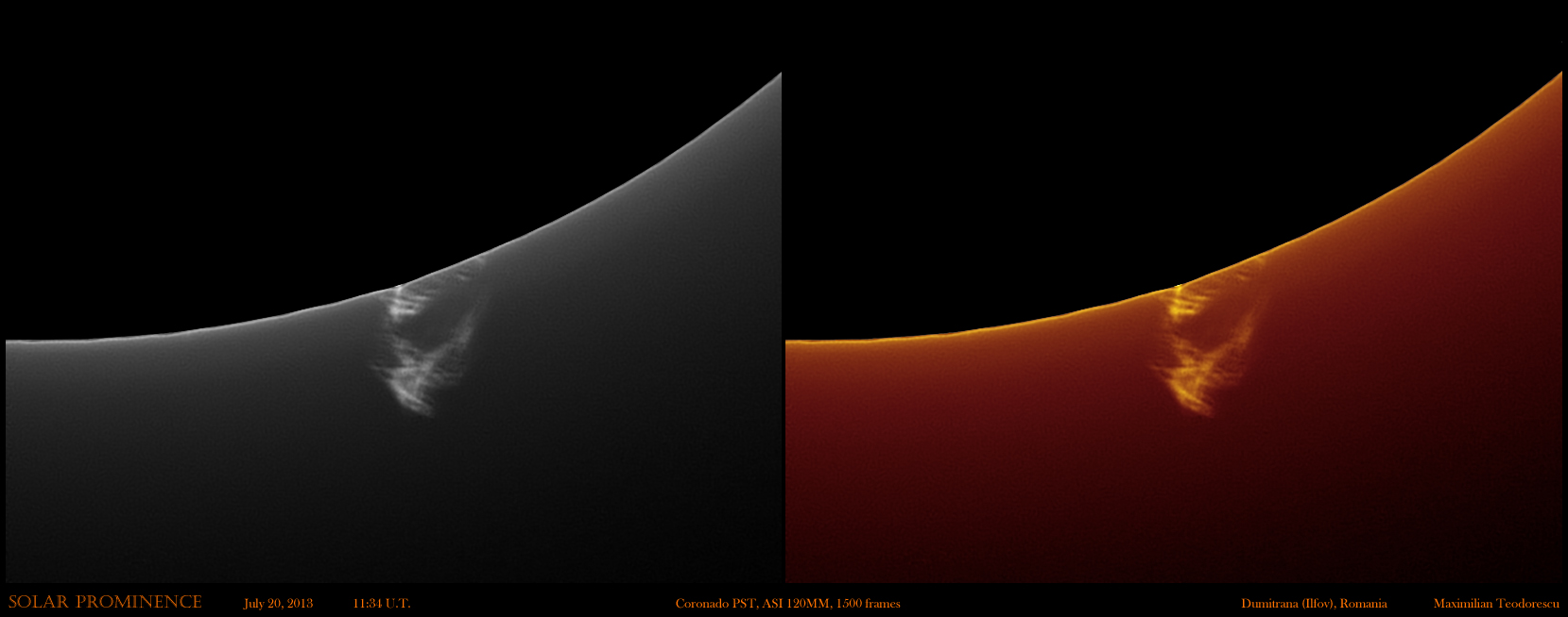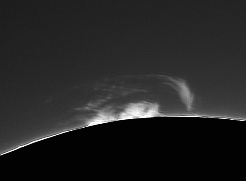 Aceasta ultima protuberanta am urmarit-o pentru mai mult de 25 minute, timp in care a evoluat semnificativ, ceea ce se si observa in animatiile de mai jos.