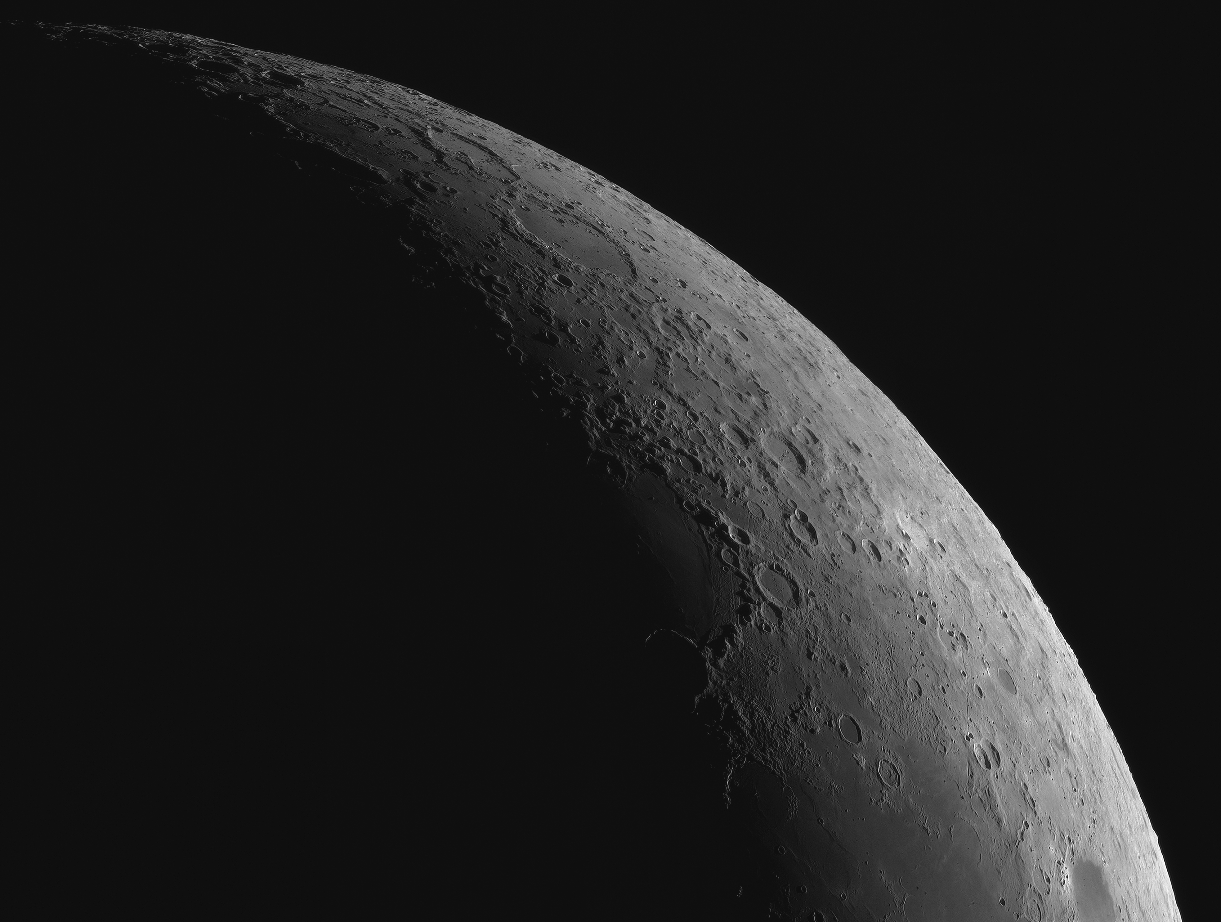 Incep cu un mozaic realizat in focarul telescopului, ce prezinta doar ceva mai mult de o treime din secera Lunii.