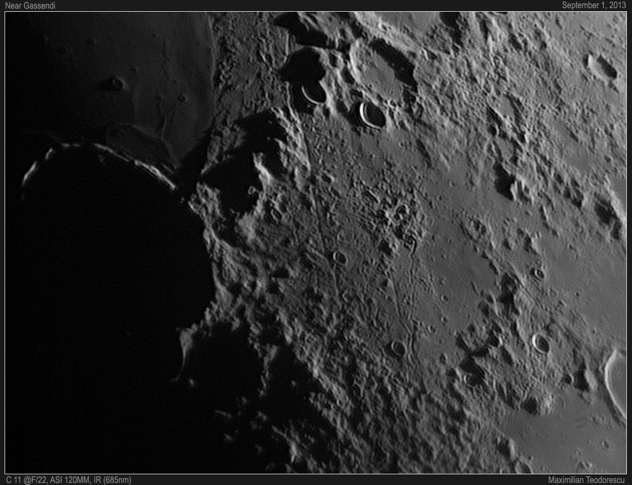 SI cateva rime langa craterul Gassendi, aflat in umbra