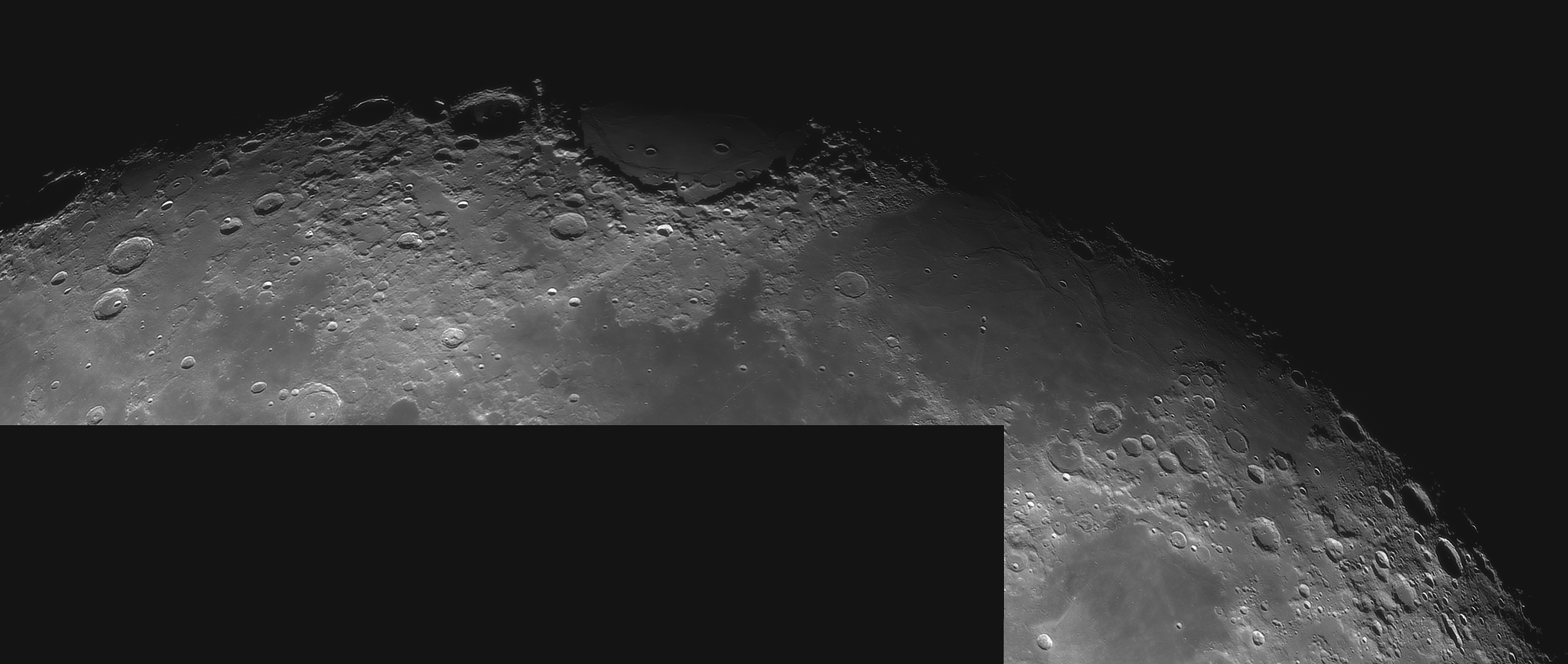 Printre picaturi am realizat si un mic mozaic din patru zone, ce prezinta o mare parte din terminatorul lunar: