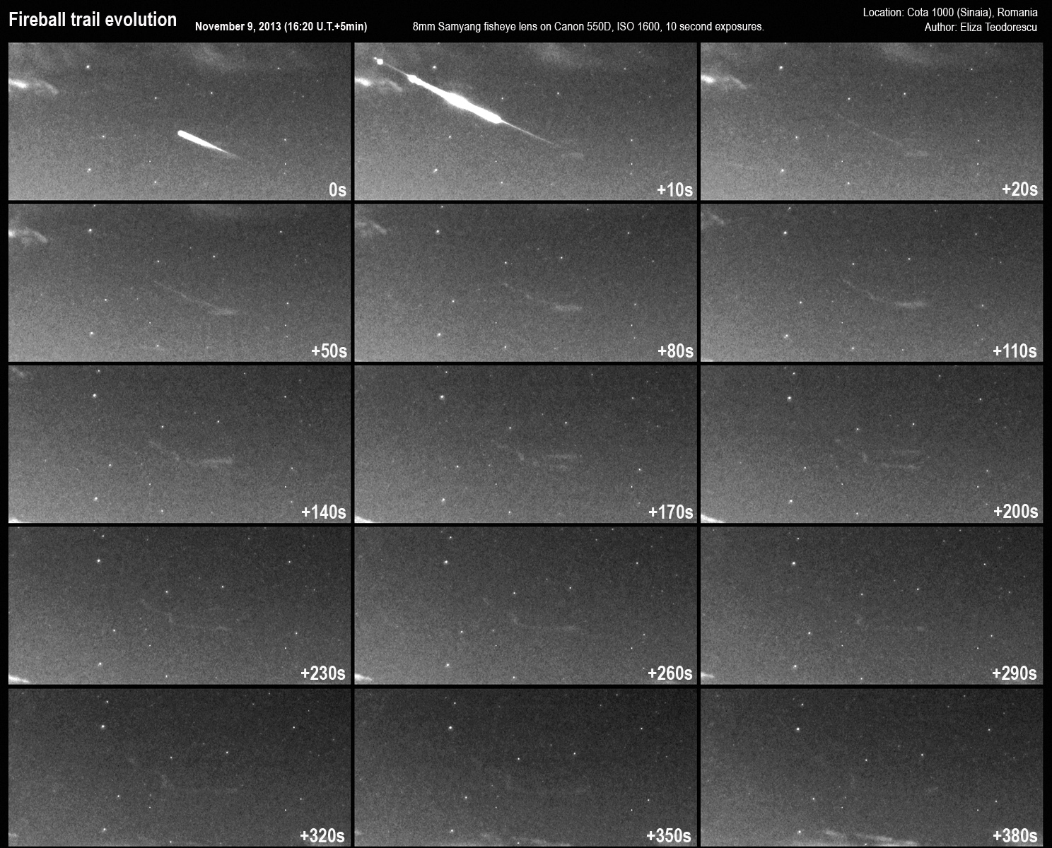 Si o secventa prezentand evolutia temporala a urmei lasate de bolid: