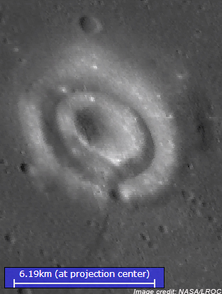 Aproape de centrul imaginii se afla un mic crater dublu pe nume Marth, observabil in toata splendoarea in imaginea de mai jos, realizata cu Lunar Reconnaissance Orbiter Camera: