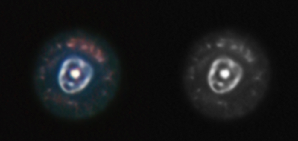 Despite the bad seeing, I did process the image in such a way that some fine details were revealed. Of course, the verification of the details had to come from a comparison with an image taken by a “better” (actually “the best”) telescope: the Hubble Space Telescope (HST):