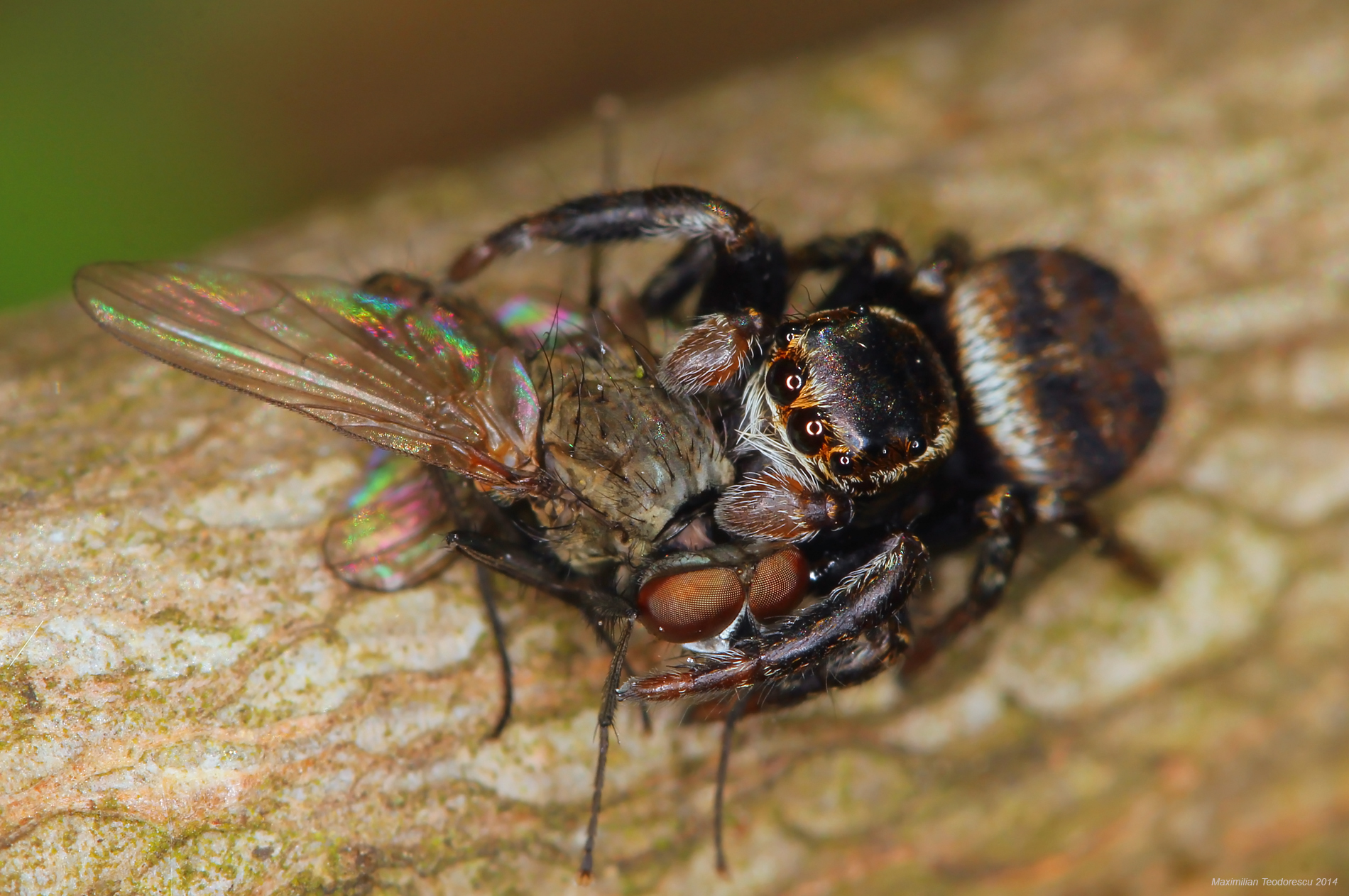 Un alt exemplar al genului Evarcha, de aceasta data un mascul, cu a sa prada “bogata”: