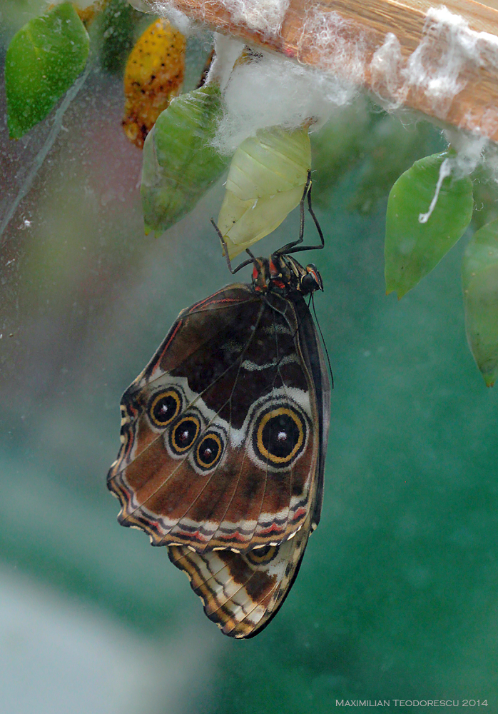 O sera mare intr-adevar, frumoasa pentru plante tropicale si 4-5 oameni care sa le observe. Nici pe departe insa incapatoare pentru puhoiul de oameni stransi la coada ce se orientau (imediat ce intrau) sa mearga in cercul delimitat de spatiul restrans al incintei. O adevarata tampenie de organizare. Undeva intr-o latura a incaperii erau expuse cateva zeci de crisalide din care ieseau fluturi (foarte putini, insa nu aici ar fi problema), intr-o alta latura cateva crisalide de Attacus atlas (cel mai masiv fluture de pe Terra!) si daca aveai noroc, pe diferite plante si la inaltimi destul de mari mai zareai cate un exemplar de Morpho, Bolima sau Caligo. In total am observat doar 8 fluturi, din care 2 exemplare muribunde de Morpho. Oribila “expozitie”.