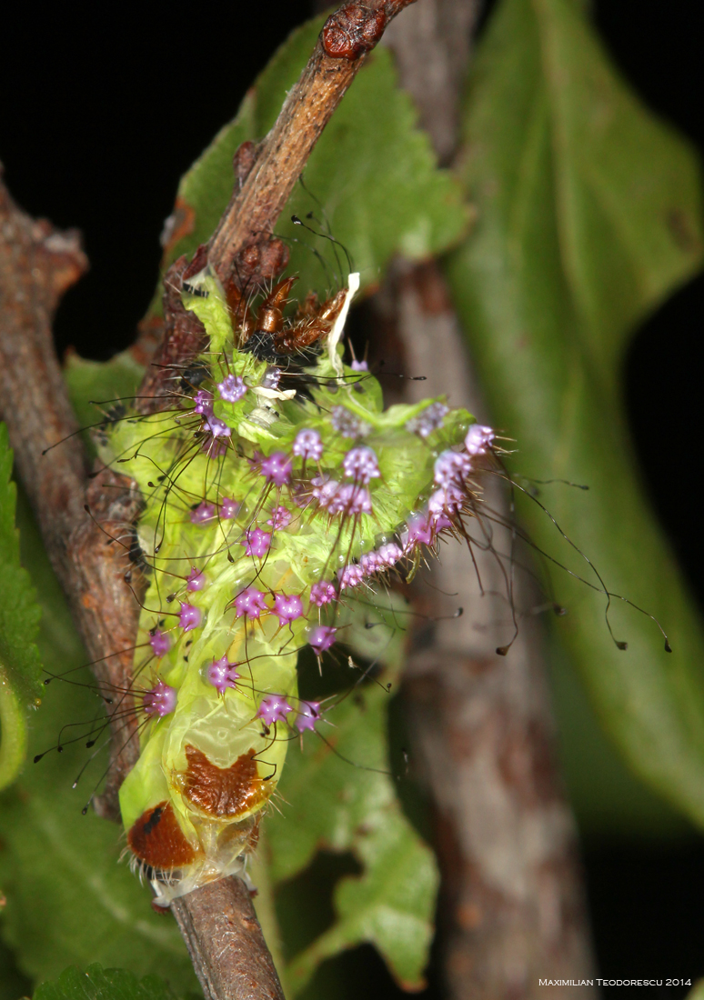 Pielea naparlita a larvei L5 a ramas lipita pe o crenguta, asa ca i-am acordat si ei putin atentie: