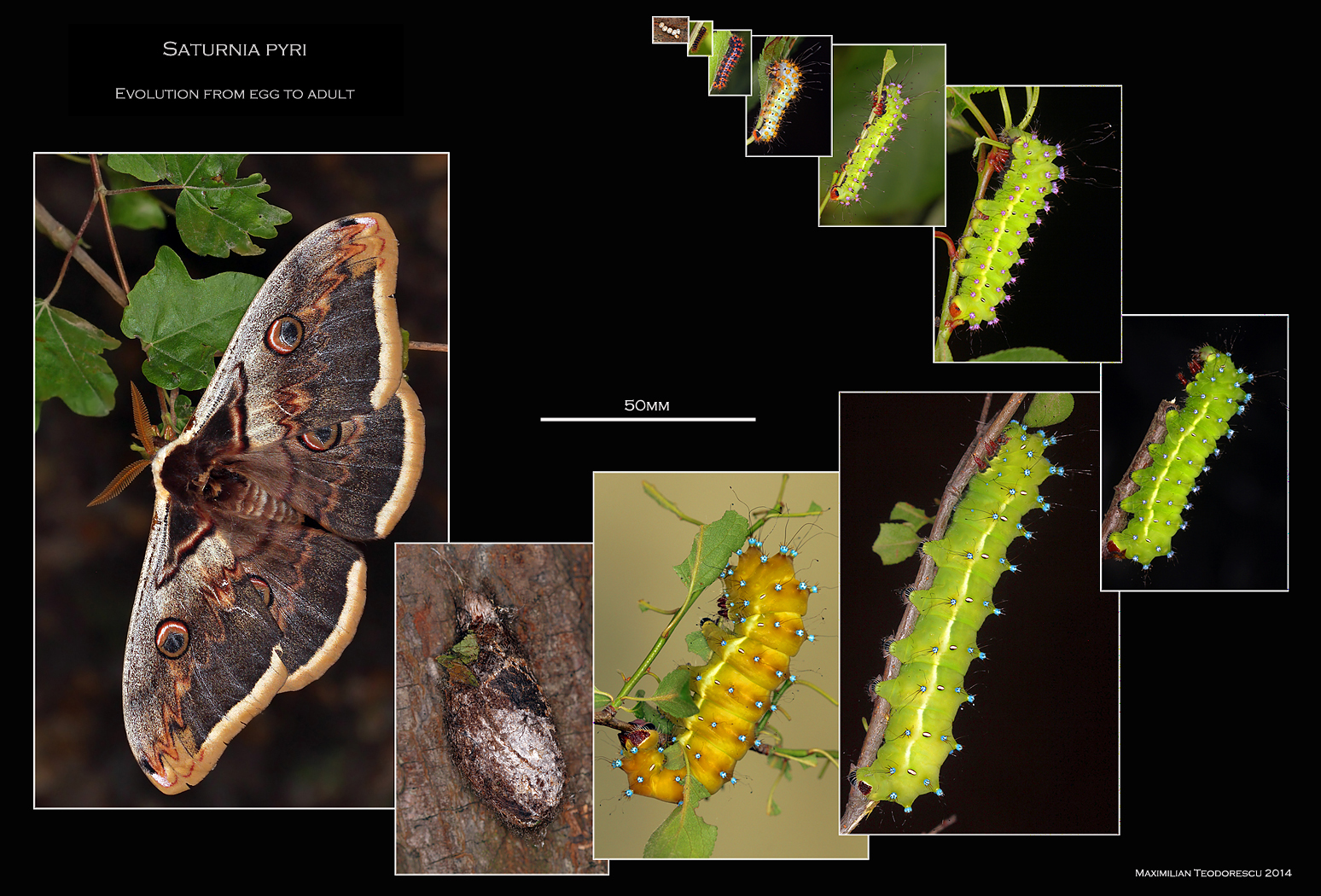 Pana atunci, o retrospectiva in imagini a evolutiei larvelor, cu imaginile scalate functie de dimensiunile aproximative ale subiectilor la momentul fotografierii: