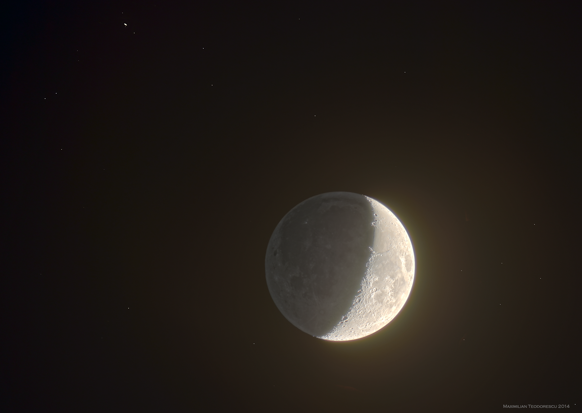 The series themselves were acquired in order to create a High Dynamic Range image of the pair, showing both the Sun-illuminated part and the Earthshine of our satellite, but also the star-filled background and Saturn with some of it’s satellites, including Titan.