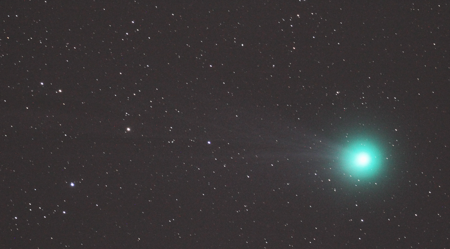 I was able to catch some tail in a single frame also, framed by the near-by stars: