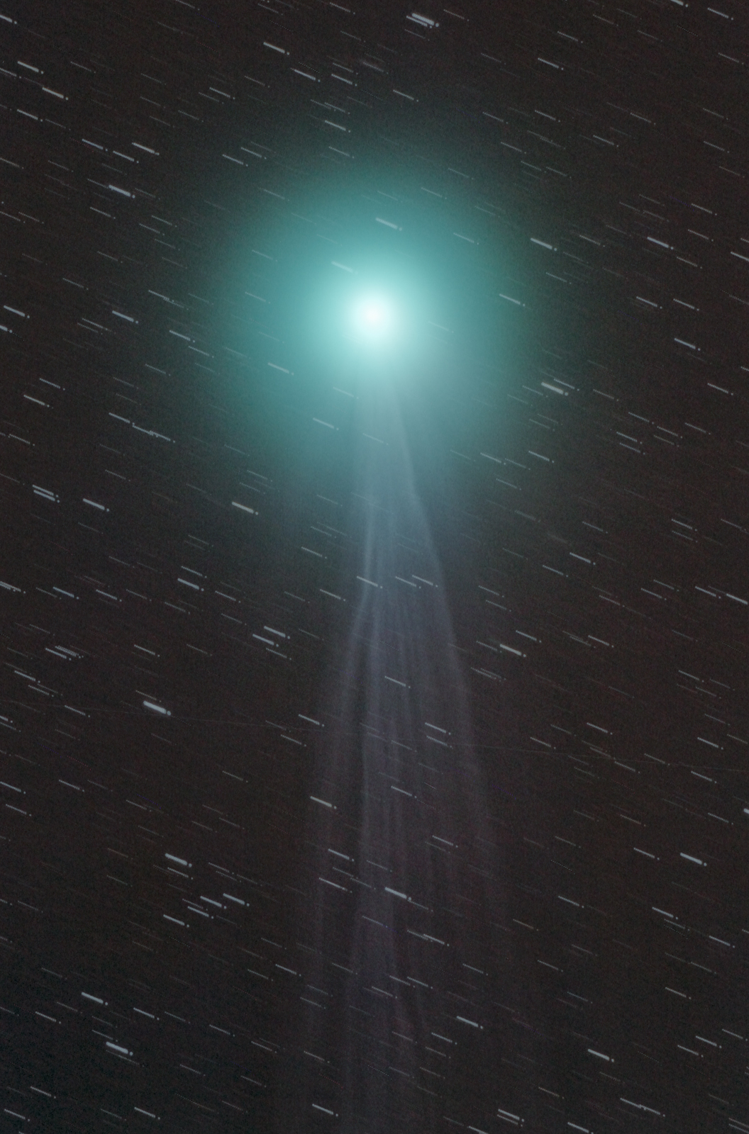 I will start with a wider image showing some of the inner part of the comet’s tail. The image is a two-panel mosaic, each a 3×5 minute exposures at ISO800.
