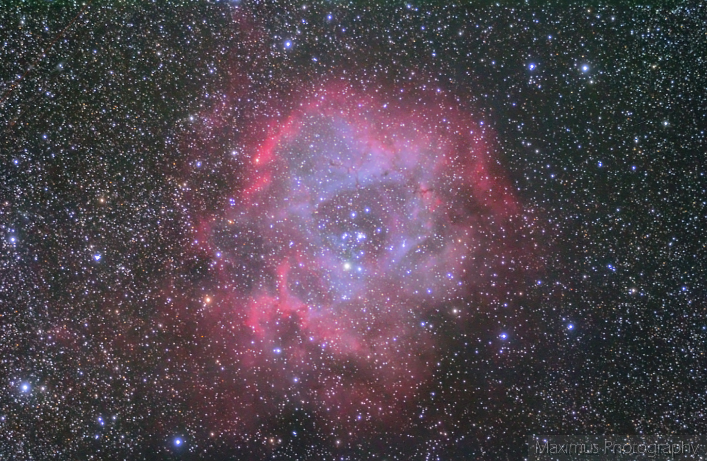 I’m starting with a rather difficult (at least for processing) object, called the Rosette Nebula, in the constellation of Monoceros.