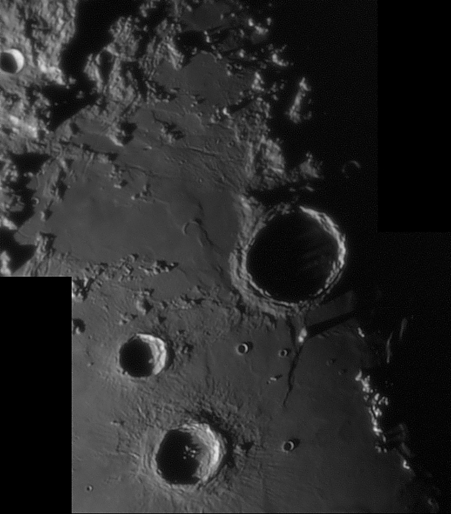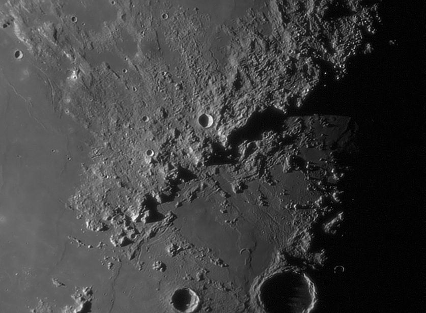 Notice the rima inside Vallis Alpes in the third image. There is also a rather special lunar feature (at least in terms of visibility with amateur telescopes) visible in the first image, named Ina.