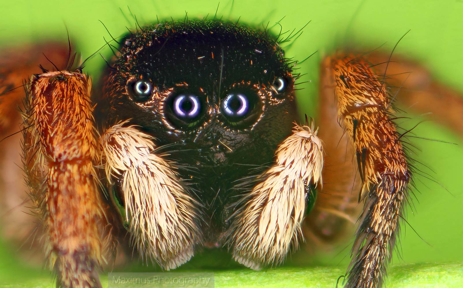 First, the spider. Notice the reflection of the macro-ring light in the frontal eyes.