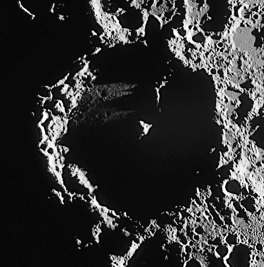 Plato was imaged last in this session. Due to the good seeing conditions, a lot of small craters are detectable onto its floor, as is the rima just to the lower-left of Plato, on the mare floor.