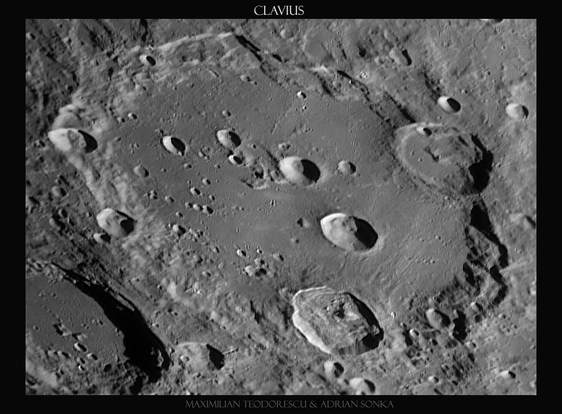 Next, a detailed view of crater Clavius, with some image distortion due to the low altitude of the Moon.