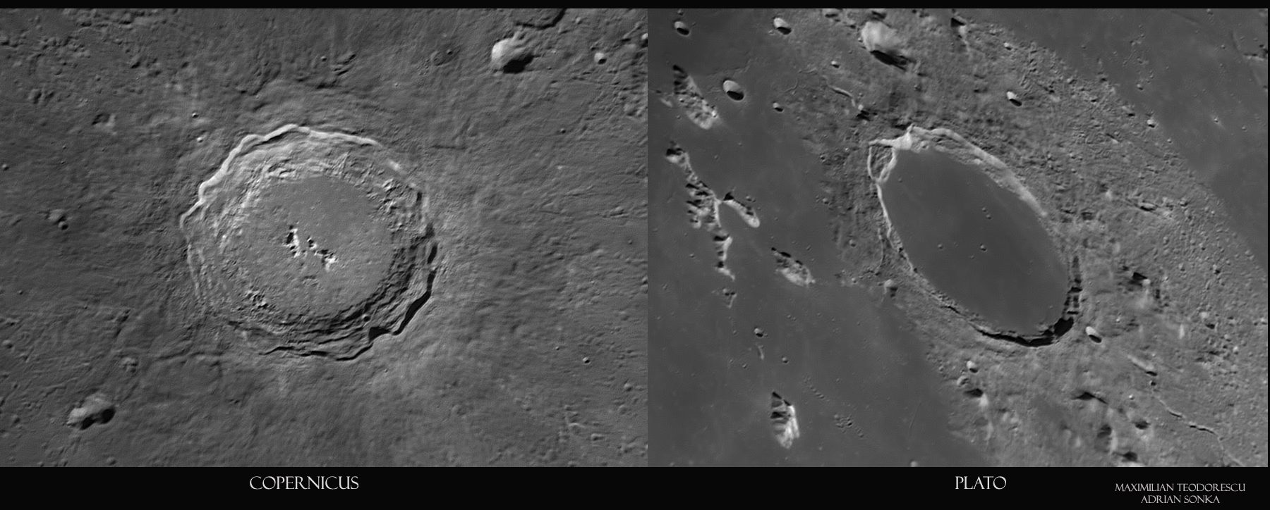 And another two well-known craters, Copernicus and Plato, with the Moon low above the horizon: