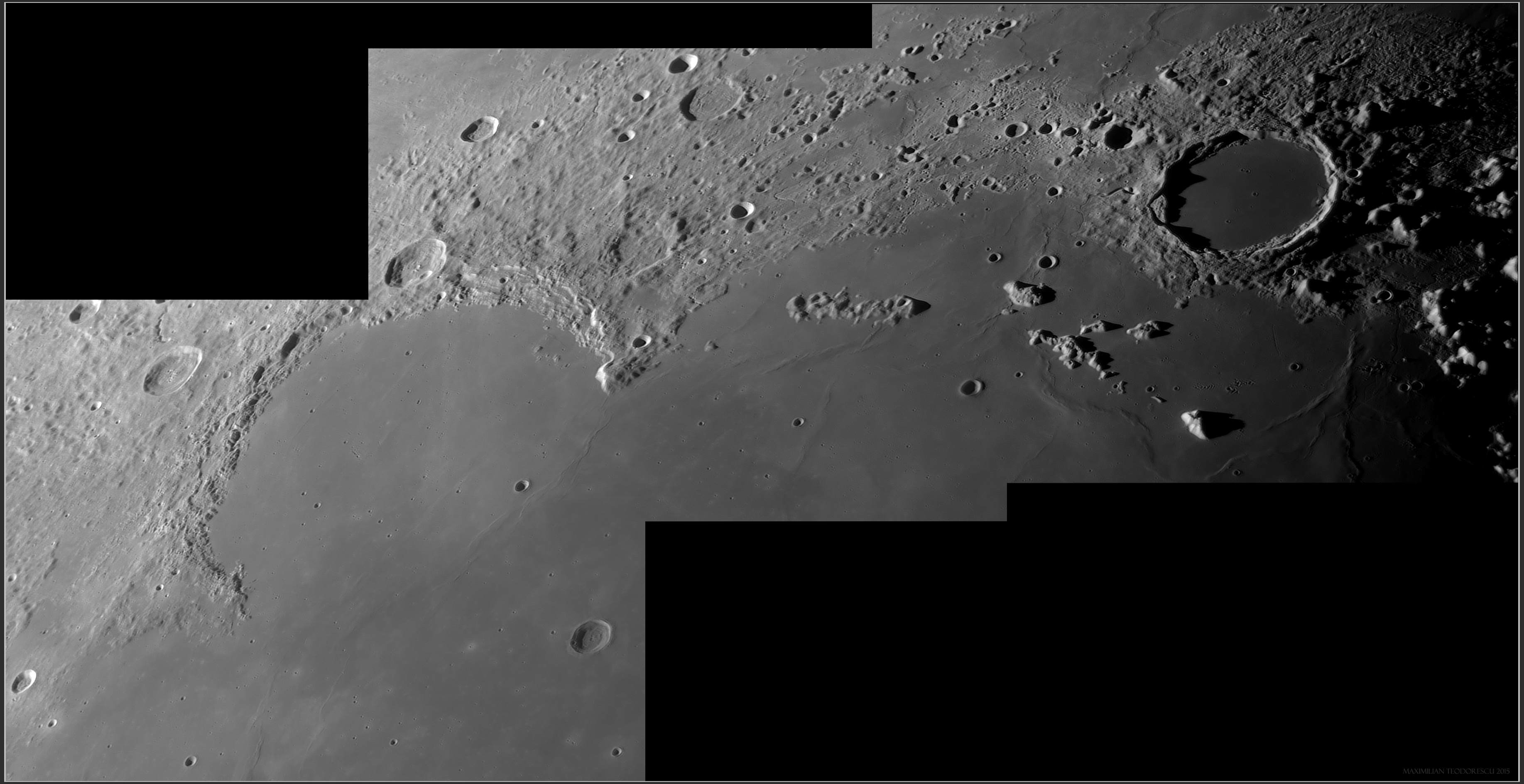 The above image was extracted from a large mosaic that also shows Rupes Recta, Rima Birt and the now well-known smaller rille perpendicular to the Straight Wall: